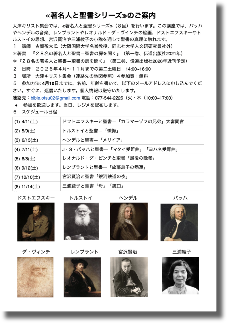 聖書よりキリストの愛と救いをお知らせする大津キリスト集会(教会)